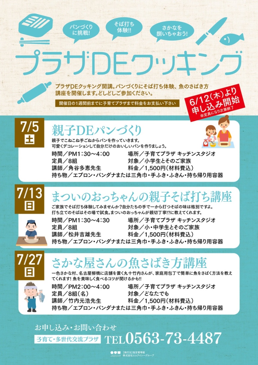 2025年06月09日(月) お知らせ お詫びと訂正 6/12(木)よりお申し込み開始となりますプラザDEクッキング 7/13(日)開催予定のまついのおっちゃんの親子そば打ち講座の時間に誤りがございました。 にしお広報7月号ではAM9:30〜0:30となっておりますが、 正しくはPM1:30〜4:30となります。 訂正してお詫び申し上げます。