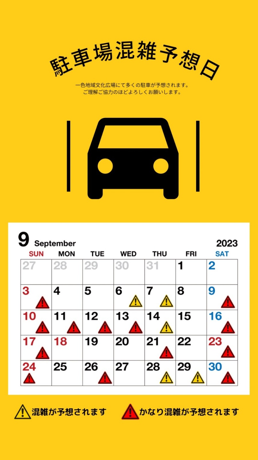 一色地域文化広場9月の駐車場混雑予想です。