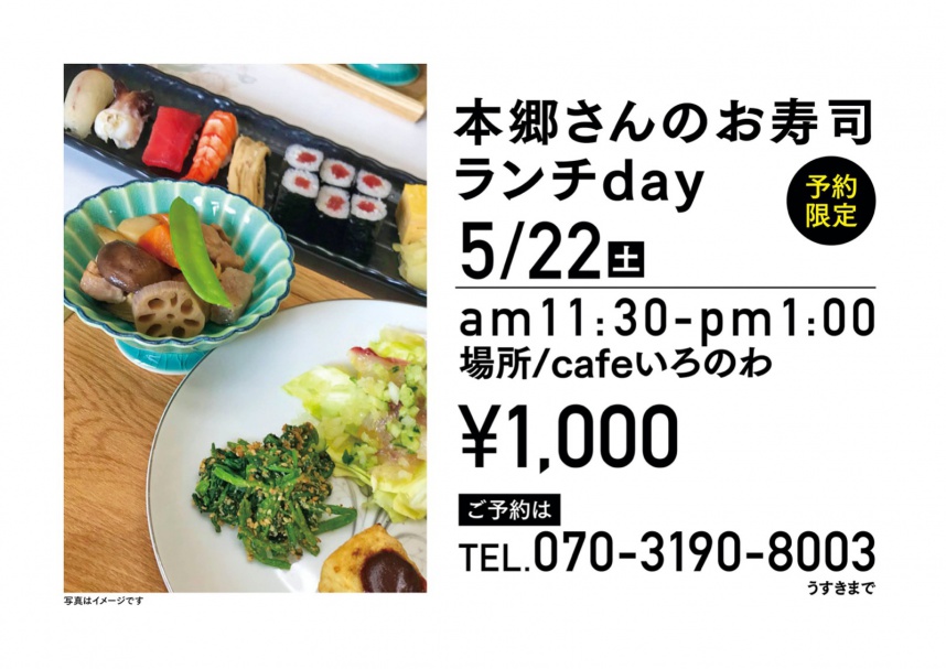 cafe いろのわ 本郷さんのお寿司ランチday開催決定
