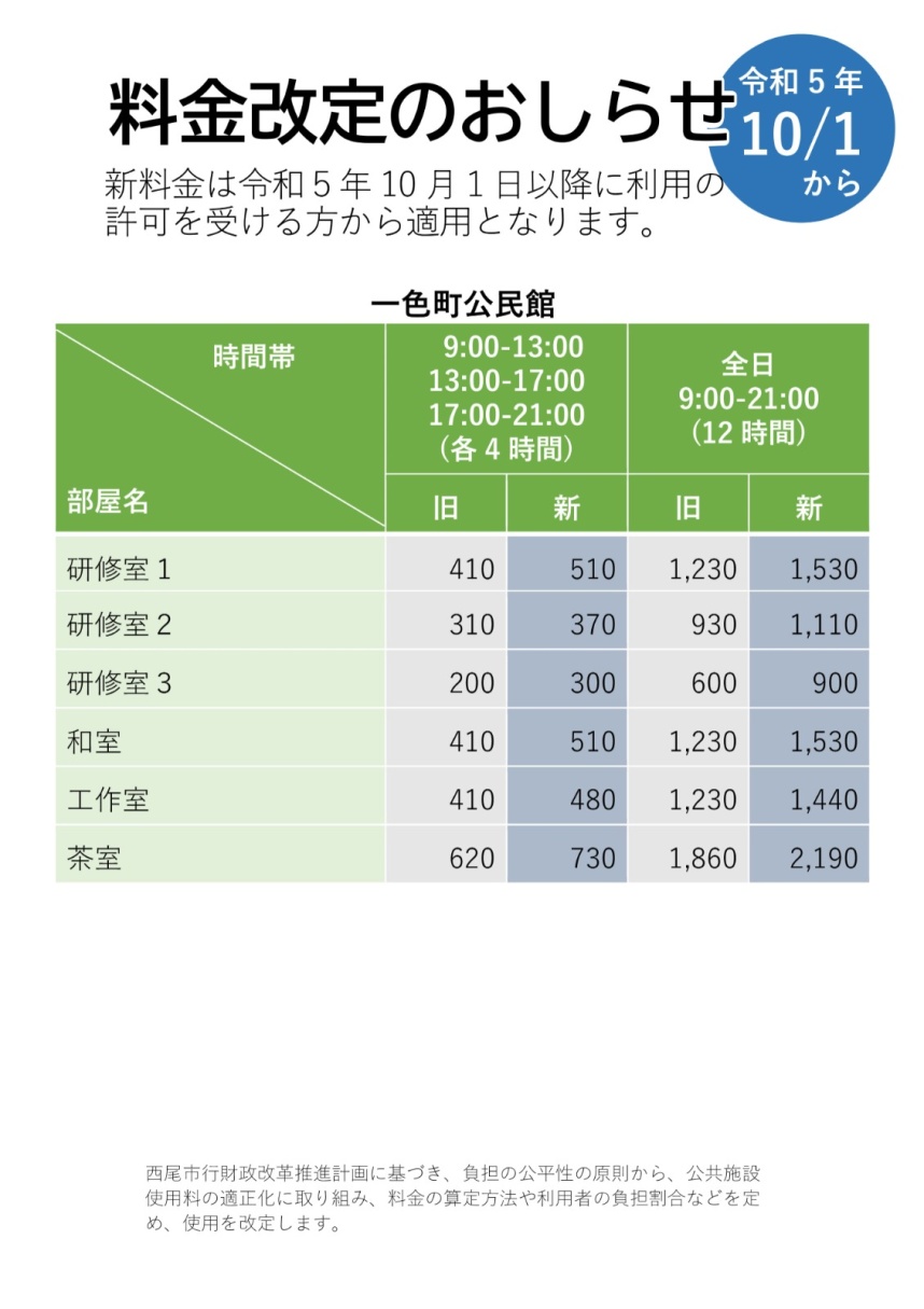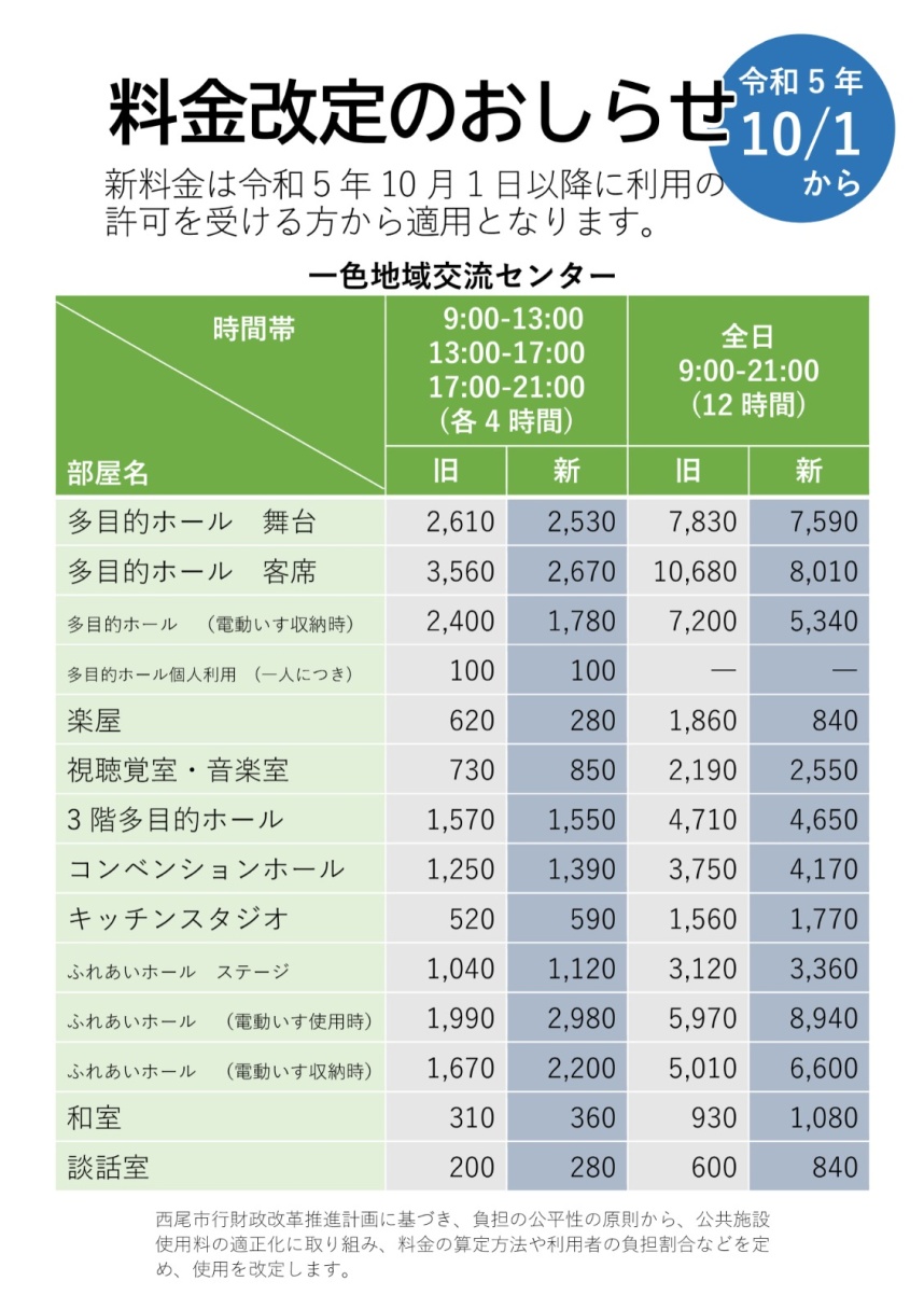 お知らせ 貸室利用料金改定のお知らせ